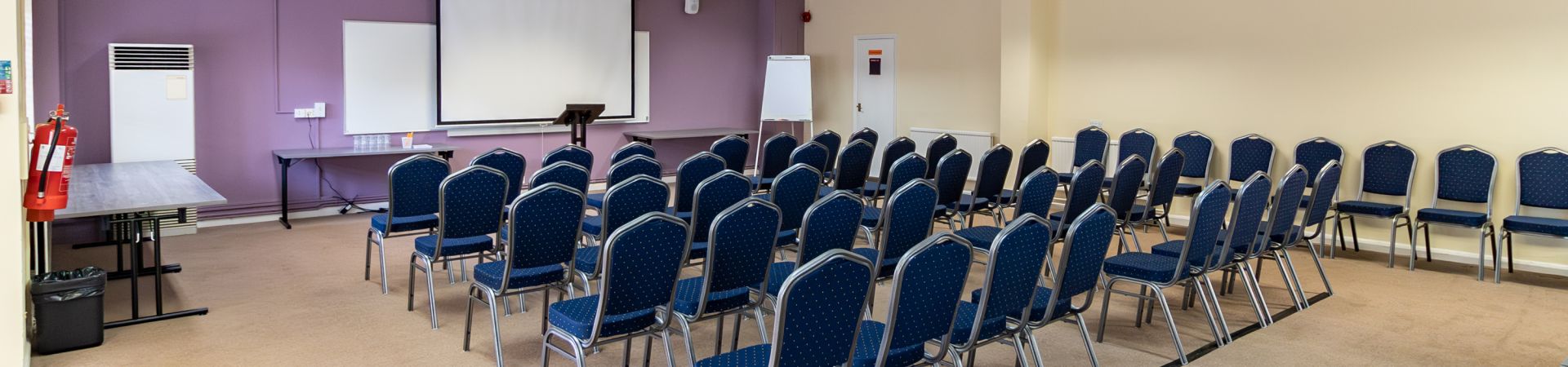 This is a medium size hall for up to 70 in theatre-style, 50 in cabaret-style and 18 in boardroom layout. It includes two smaller adjacent breakout rooms seating 8 in boardroom style or 10 in theatre or circle layout.