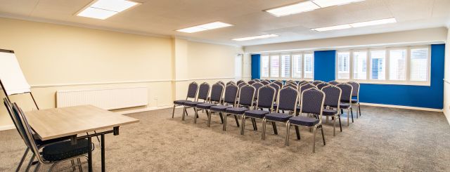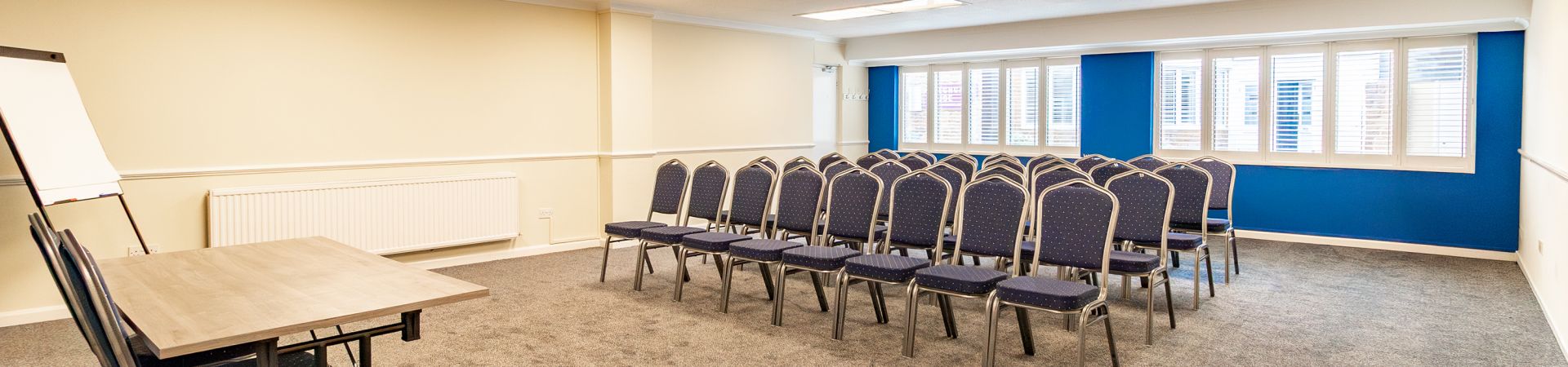 This is a medium size hall for up to 50 in theatre-style, 32 in cabaret-style and 18 in boardroom layout. It includes an adjacent breakout room.